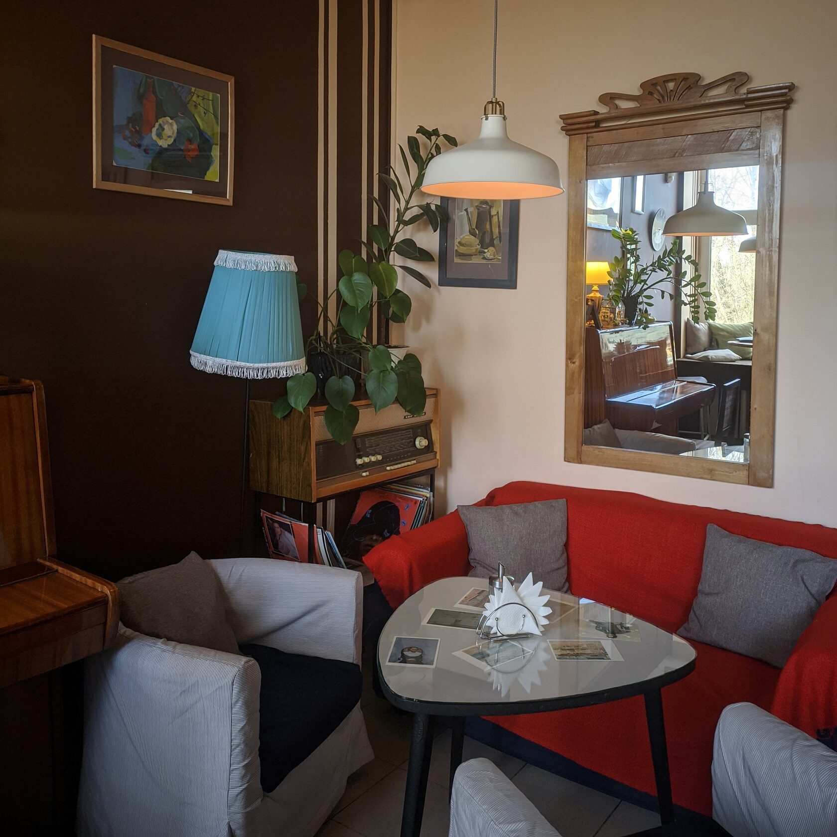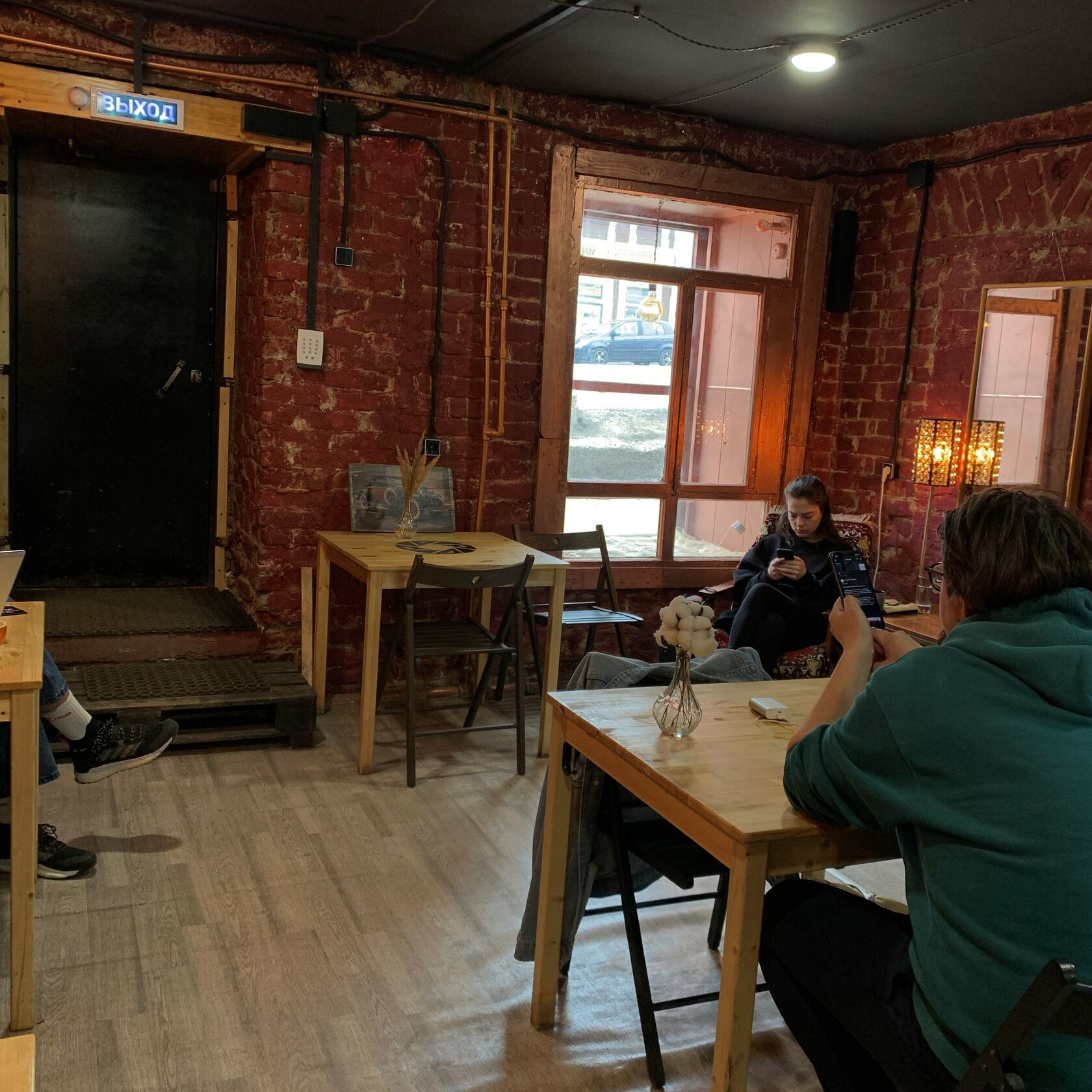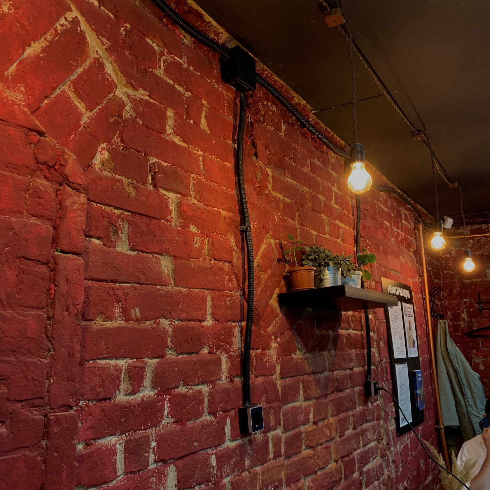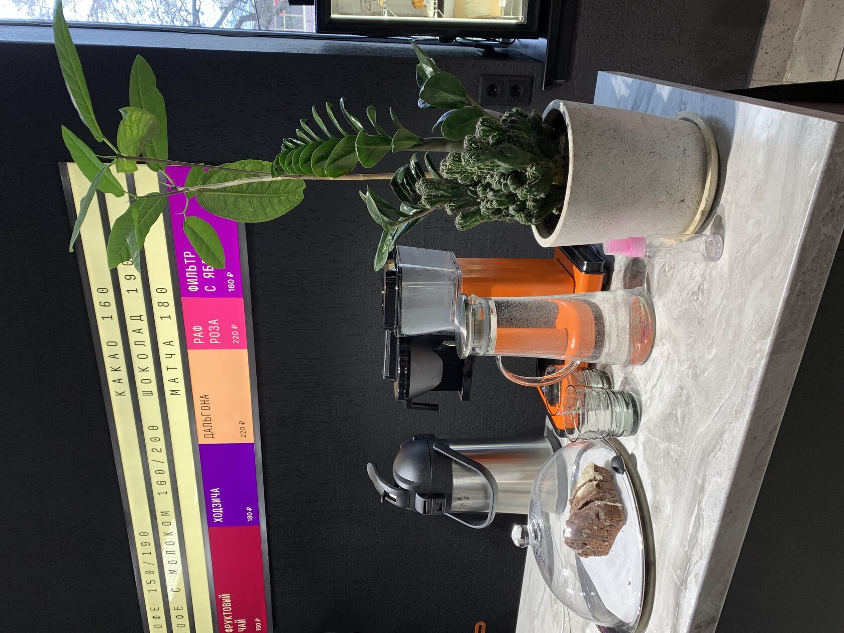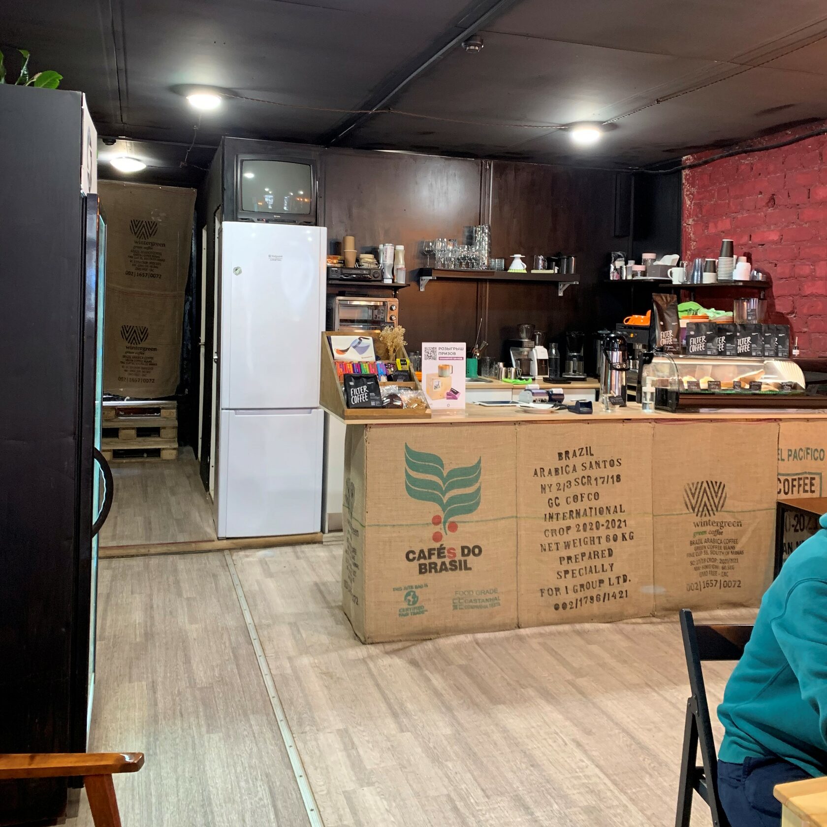 Ууу, я что попала на квест? Такой была первая мысль, когда я открыла дверь в кофейню. Стены из красного кирпича, телевизор-ящик и оконная решётка — всё создавало атмосферу подвала. Но потом я начала присматриваться к деталям: подвешенные к потолку фонарики, вазы с веточкой хлопка на каждом столе, стенд с этикетками от сахара… И вдруг появилась непринуждённая атмосфера. Сразу же захотелось собраться здесь компанией друзей и попробовать спешелти кофе, то есть кофе высокого качества. Его вкус отличается от других напитков — немного горчит. Во Фракцию можно прийти на каппинг (дегустация кофе) или чтобы послушать винил. О всех мероприятиях кофейня пишет заранее в своей группе ВКонтакте.
