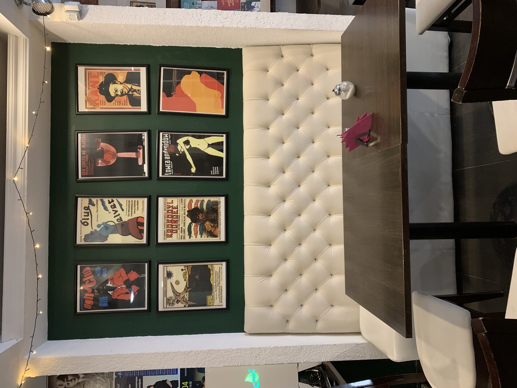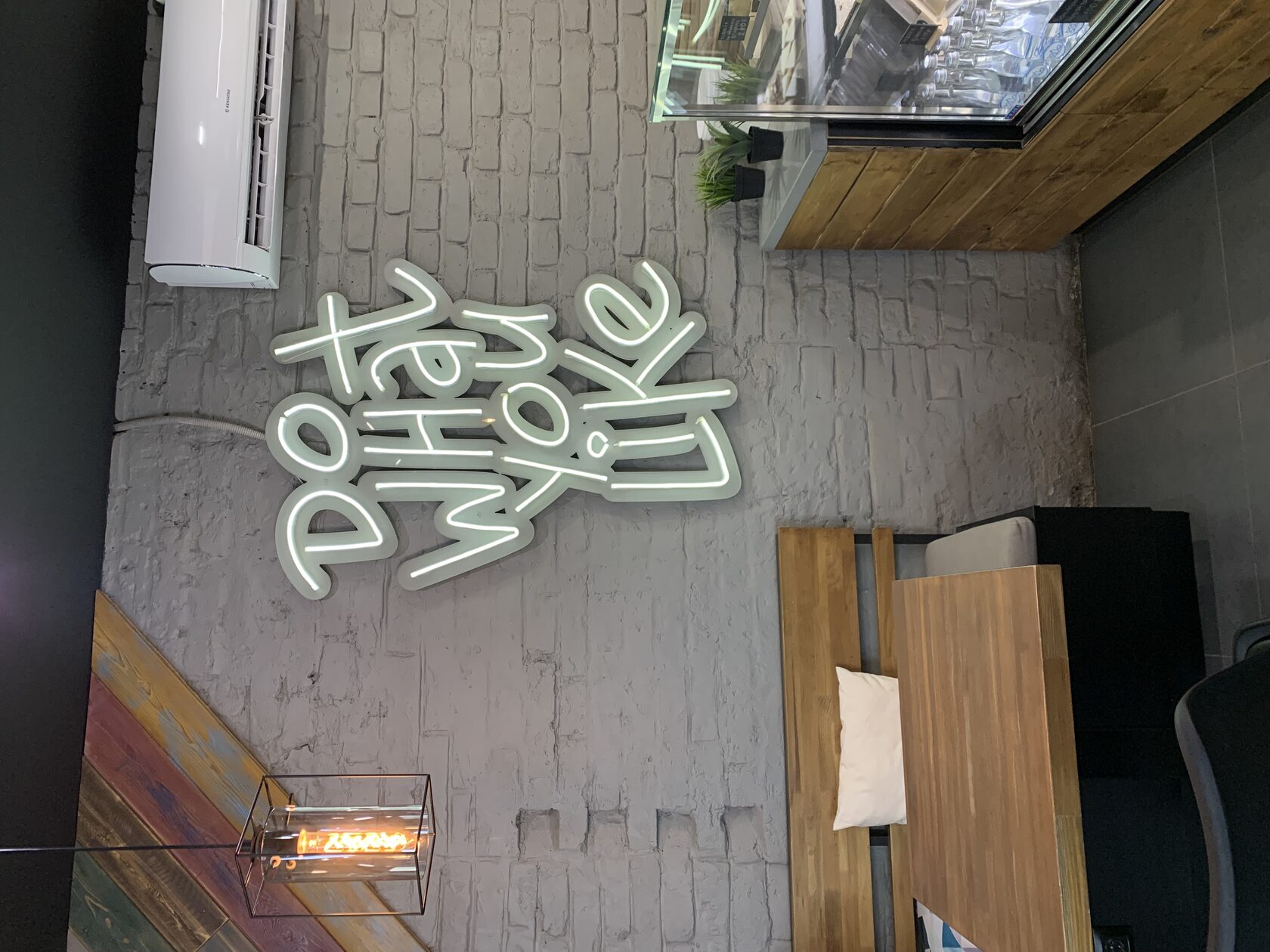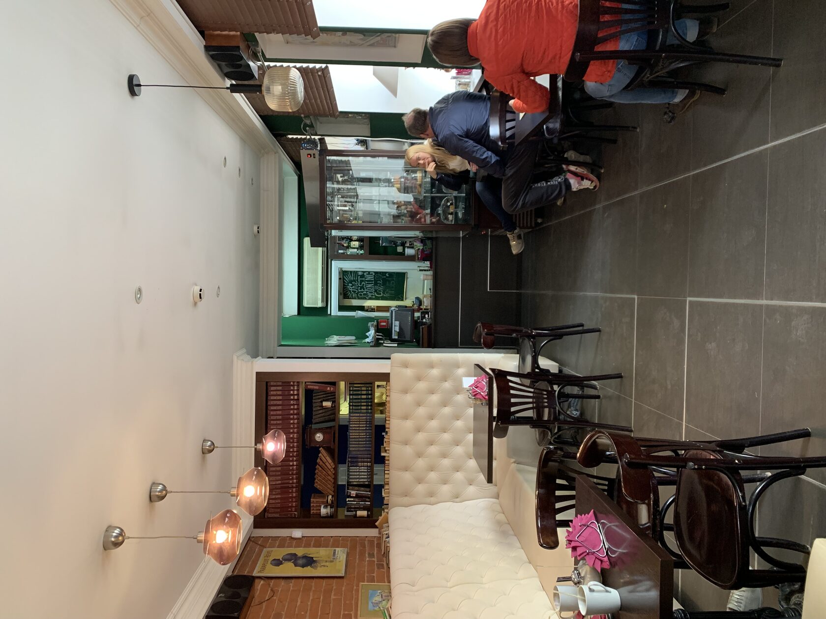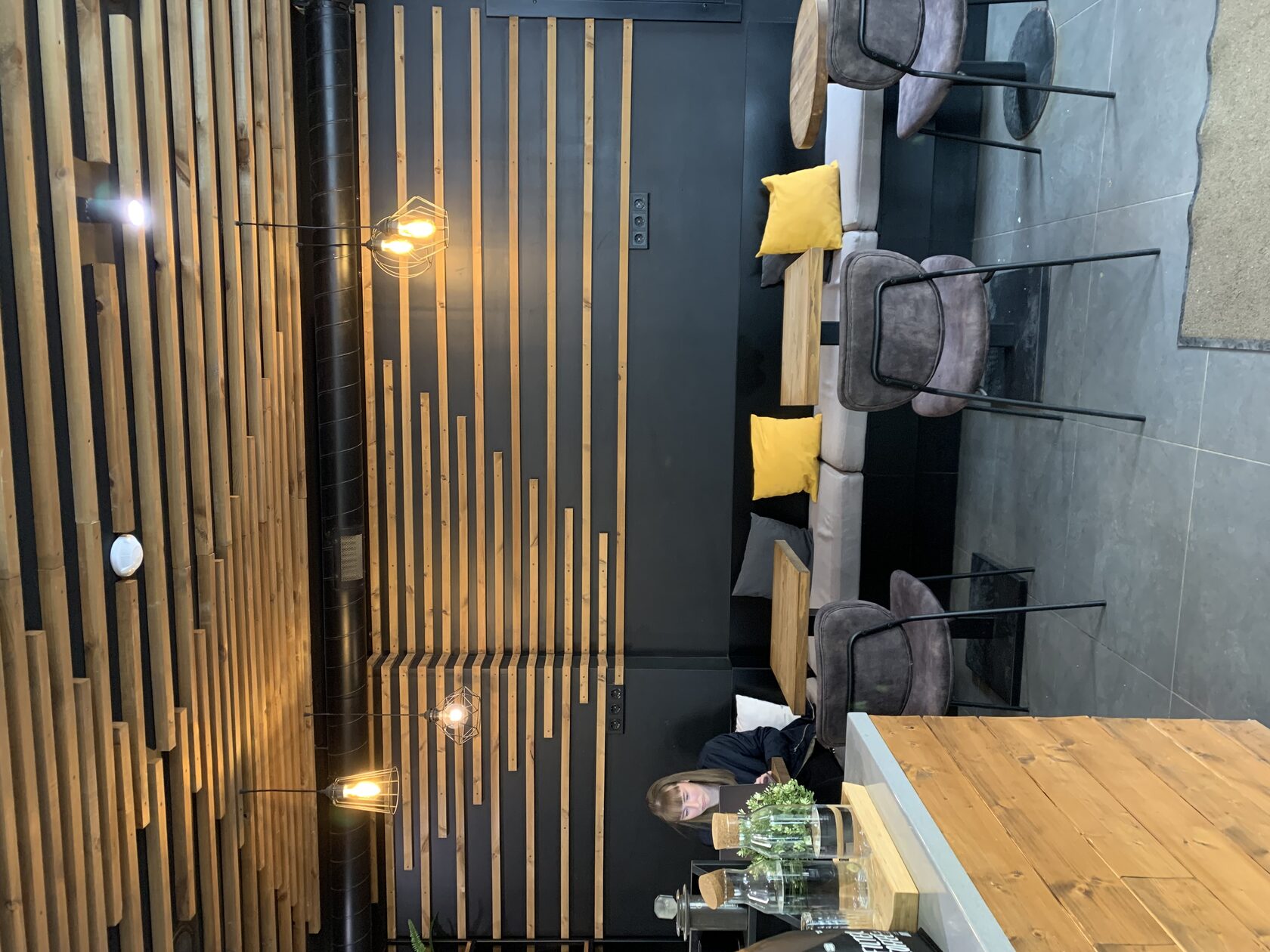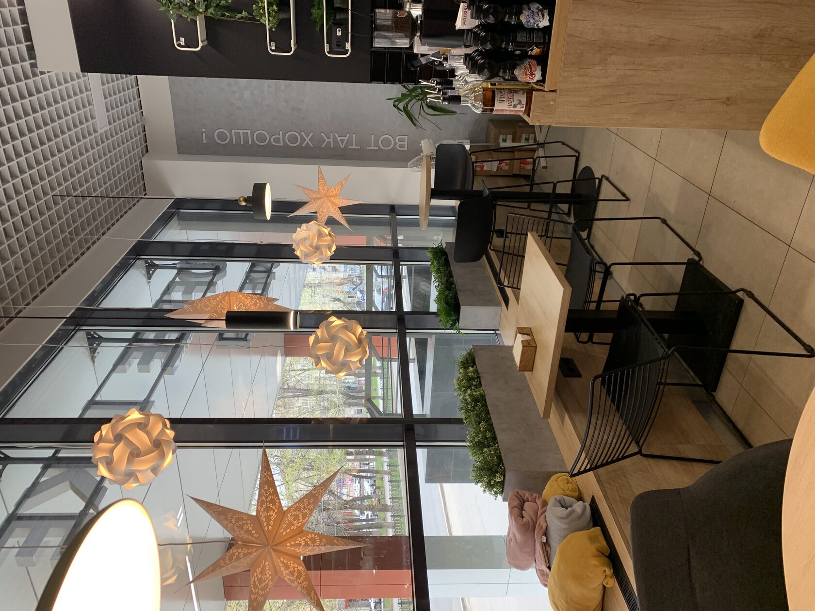 «Кофе и принтер» я заметила издалека, благодаря яркой гирлянде на входе. Оказалось, что это небольшая кофейня со стильной обстановкой. Весь зал я бы разделила на две зоны: деловую и релакс. В первой — два стола, за которыми можно поработать с ноутбуком или провести встречу. А во второй — уютная обстановка: ковер, дизайнерские стулья и кофейный столик. Здесь точно захочется провести романтическое свидание. Вообще место необычное, хотя бы потому что здесь можно распечатать свою любимую фотографию или открытку. А если говорить о кофе, то он вкусный, как и десерт ;)