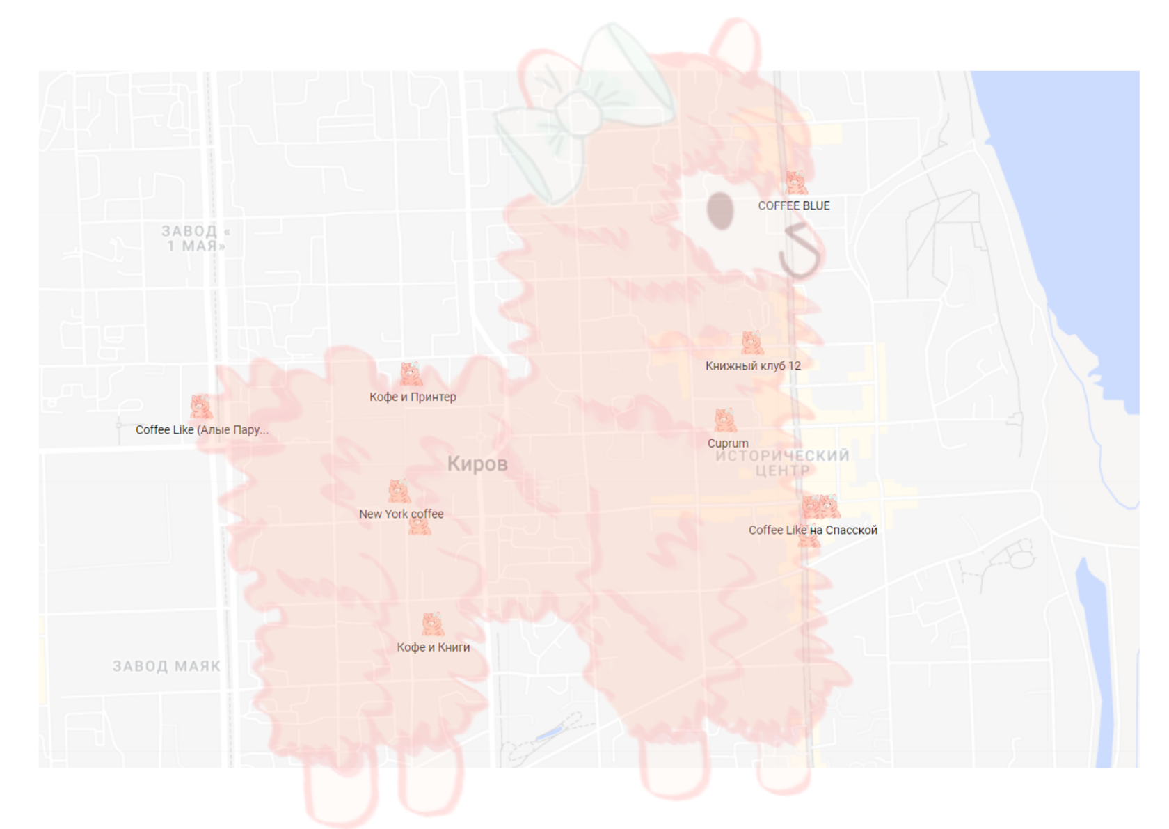 Вот и всё, моё путешествие по кировским кофейням подходит к концу. Я обошла 11 мест, каждое отметила на карте, и вот что получилось: